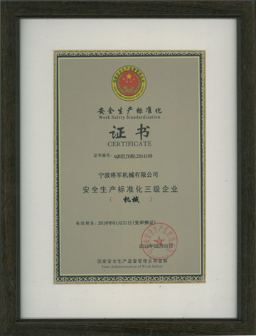 Grade III Work Safety Standardization Enterprise Certificate